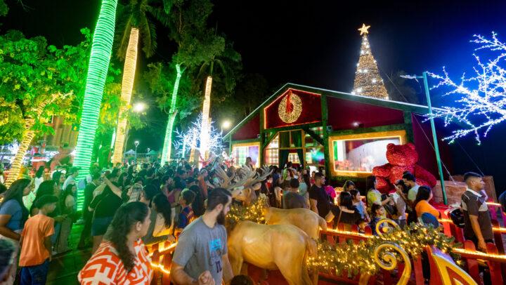 O acender das luzes da praça clareou e deu cor à decoração natalina preparada pela Prefeitura para encantar a população e os visitantes da cidade.Com o tema Natal do Amor, o clima natalino tomou conta de toda a praça Brasil que ganhou luzes, casa do papai do Noel, presépio e árvores coloridas por todo o espaço.