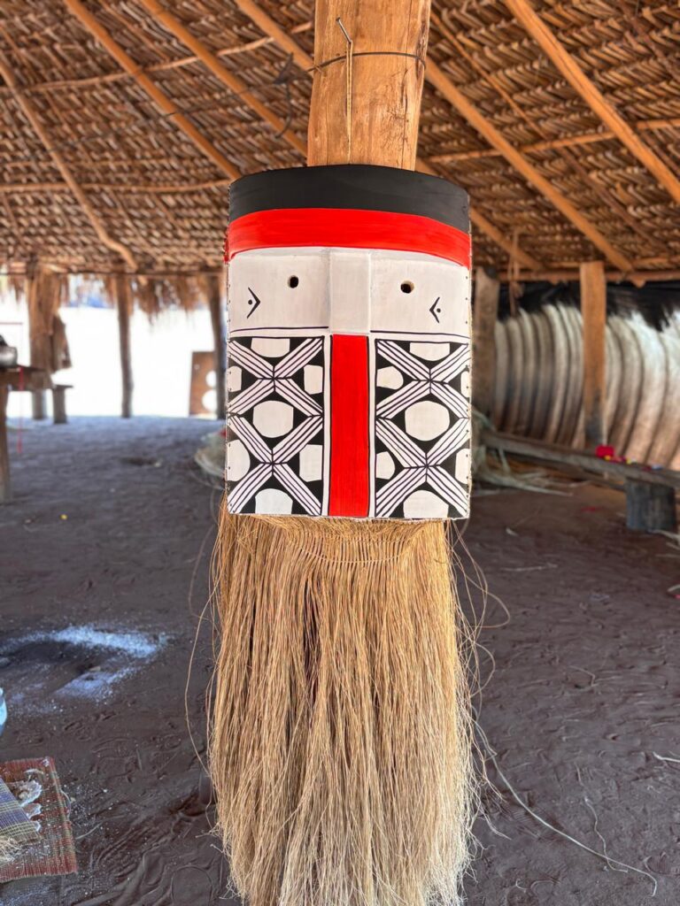 As máscaras, chamadas Yakuni, são produzidas para o ritual dos espíritos e representam importantes entidades da cosmovisão alto-xinguana, como Atuxua, Xapukuyawa, Yakuikatu, Kapulukumã e Yewekuitxumã.