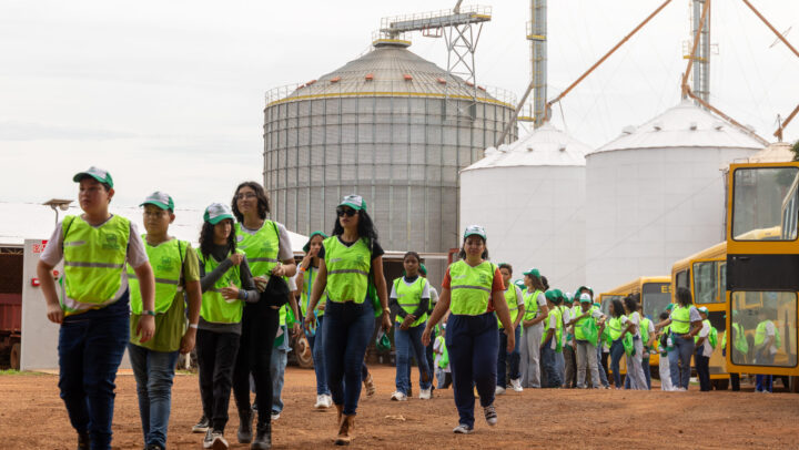 Alunos da rede municipal conhecem fazenda sustentável produtora de grãos