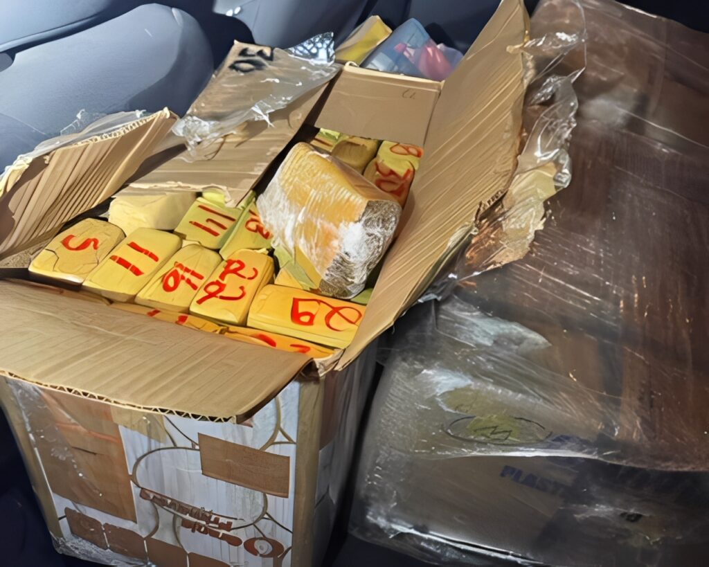 Ao ser solicitado que abrisse a porta, os militares visualizaram seis caixas de papelão e uma caixa de jogo de bingo. Questionado sobre o que transportava, o motorista confirmou que se tratava de drogas.