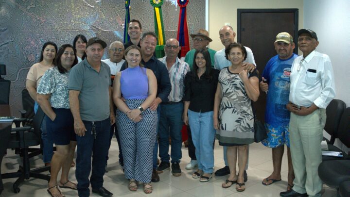 Moradores dos bairros Jardim das Flores, Nossa Senhora do Amparo e Jardim Iguaçu foram representados por seus líderes comunitários durante encontro com a primeira-dama Alessandra Croco Ferreira e o prefeito Cláudio Ferreira em seu gabinete no Paço Municipal.