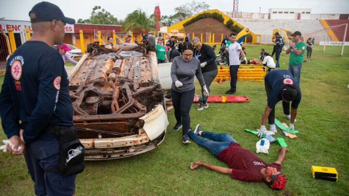 O treinamento foi realizado no Estádio Municipal Engenheiro Luthero Lopes e contemplou todas as etapas de um atendimento de urgência e emergência, com simulação realista de socorro inicial ao paciente até a chegada ao hospital.