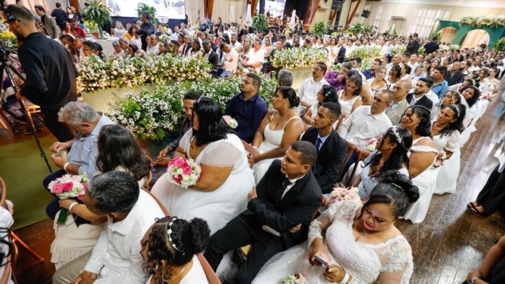 Com investimento da Prefeitura de Rondonópolis e organização da Secretaria Municipal de Promoção e Assistência Social, 118 casais da cidade tiveram a oportunidade de celebrarem e oficializarem a união conjugal neste sábado (13/12) no projeto “Bem Casados”. Somando os noivos e seus convidados, autoridades e profissionais, mais de 1.000 pessoas participaram da cerimônia.